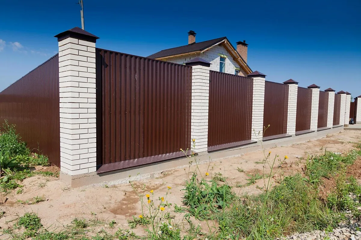 Для участков не более 10 соток подойдет забор из евроштакетника, а для более обширных территорий идеально подойдет ограждение из профнастила (металлопрофиля).